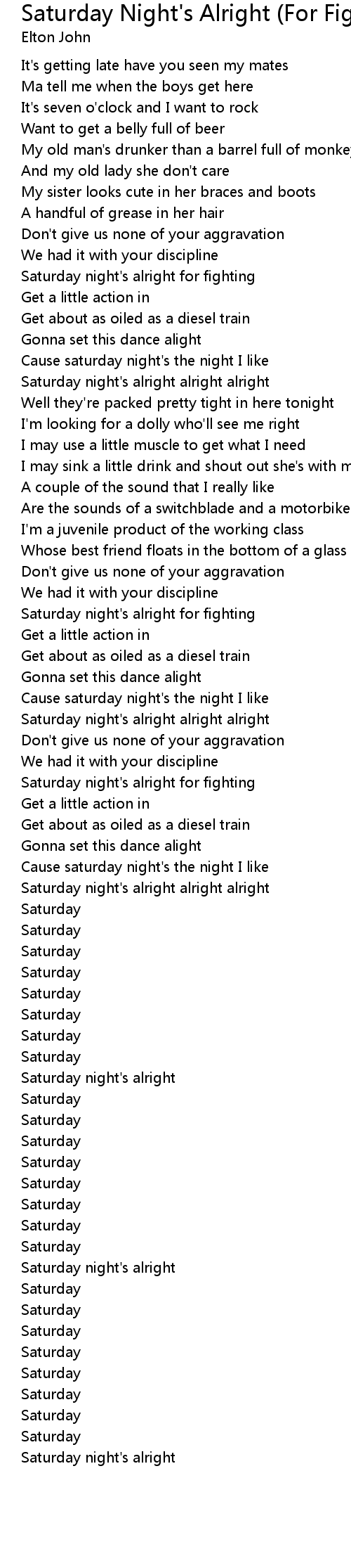Saturday night's alright |