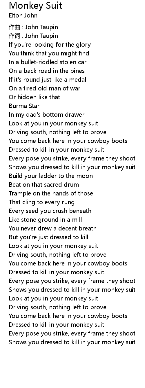 | Dressed to kill in your monkey suit | |