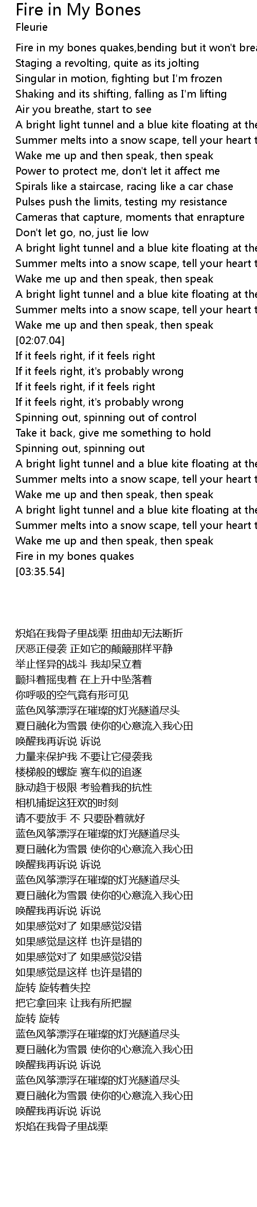 Fire in my bones quakes,bending but it won't break |