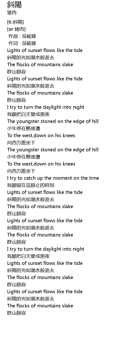 | [00:00.00] | 作曲 : 吳峻藤 |