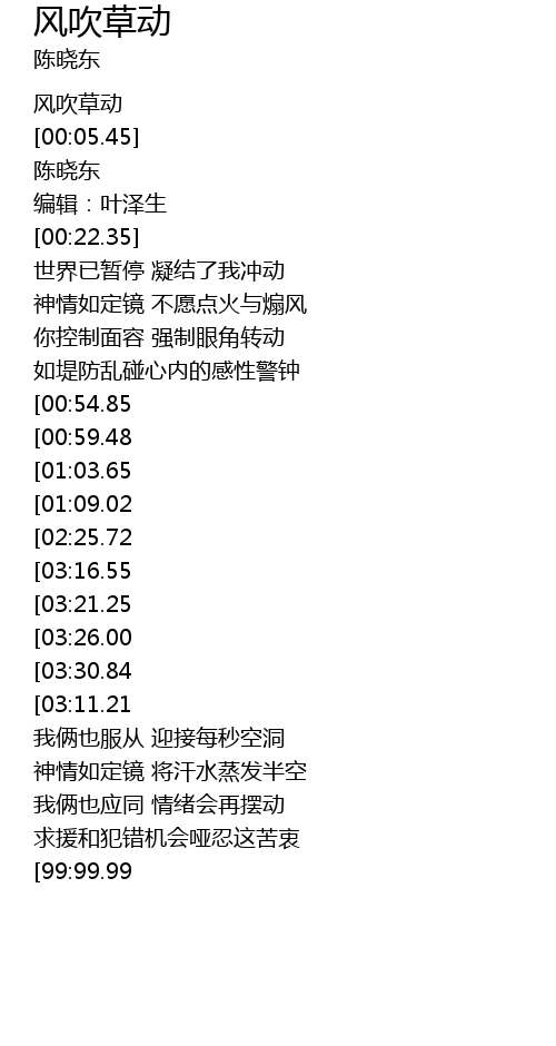 | [03:36.17][03:16.55][02:27.27][01:16.99] | zai mei fa cheng shou feng chui cao dong |
