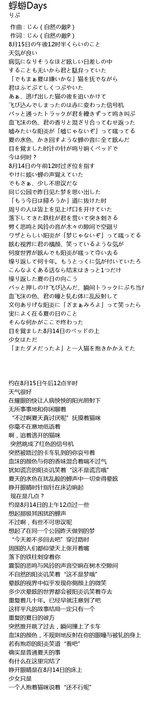 | [00:01.00] | 作词 : じん(自然の敵P) |