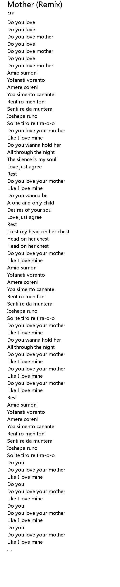 | [03:40.73] | Do you love your mother |