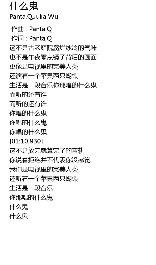 | [01:01.200] | nǐ chàng de shén me guǐ |
