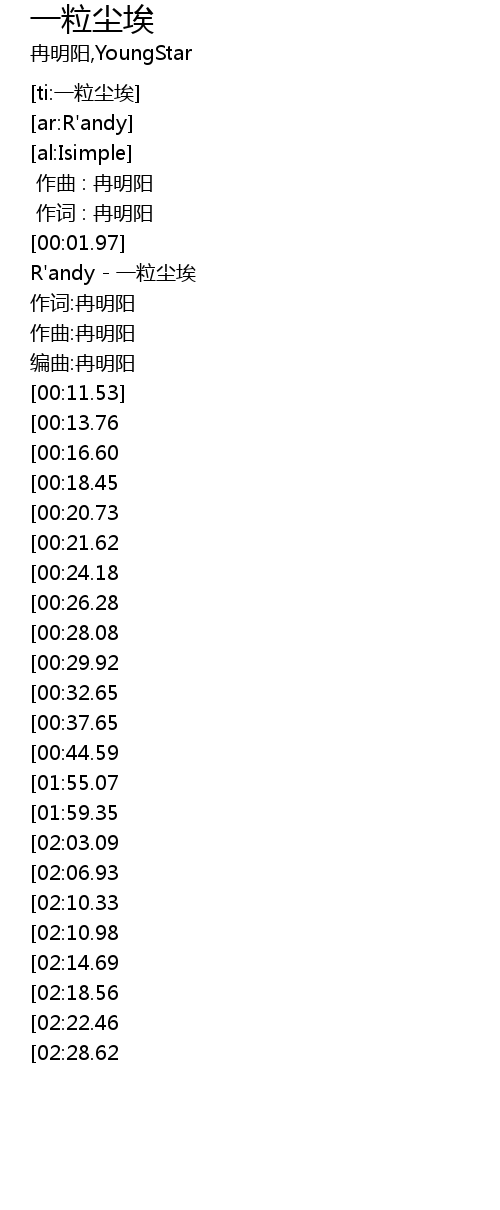 | [00:03.60] | R'andy - 一粒尘埃 |