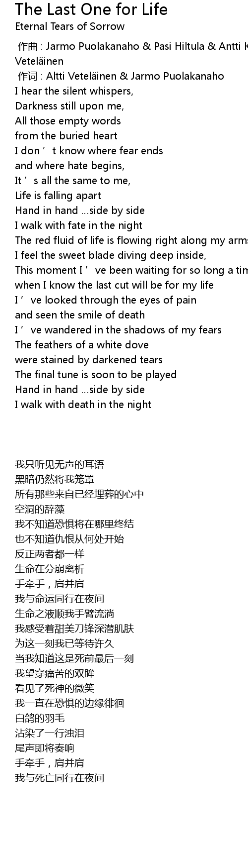 | [00:00.00] | 作曲 : Jarmo Puolakanaho & Pasi Hiltula & Antti Kokko & Altti Veteläinen |