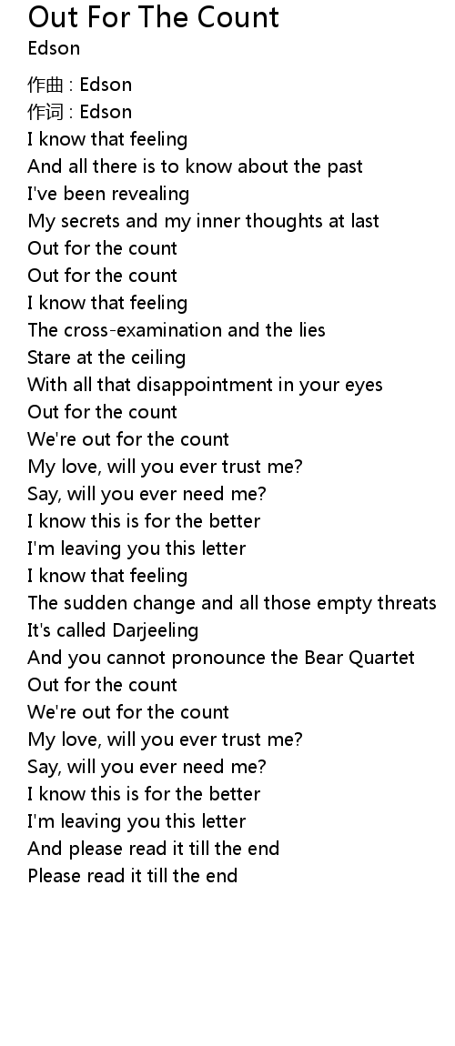 | Song | Out For The Count |