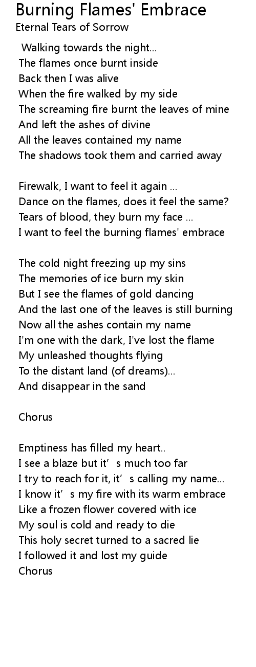 | I want to feel the burning flames' embrace | |