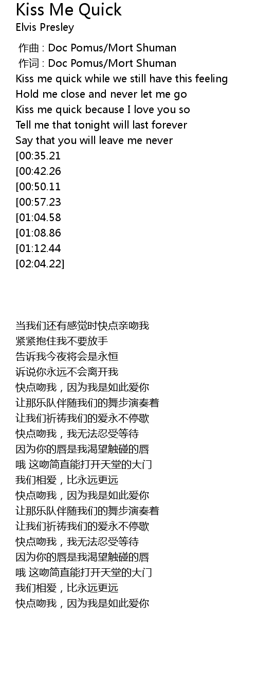 | [01:56.17][01:12.44] | So kiss me quick because I love you so |