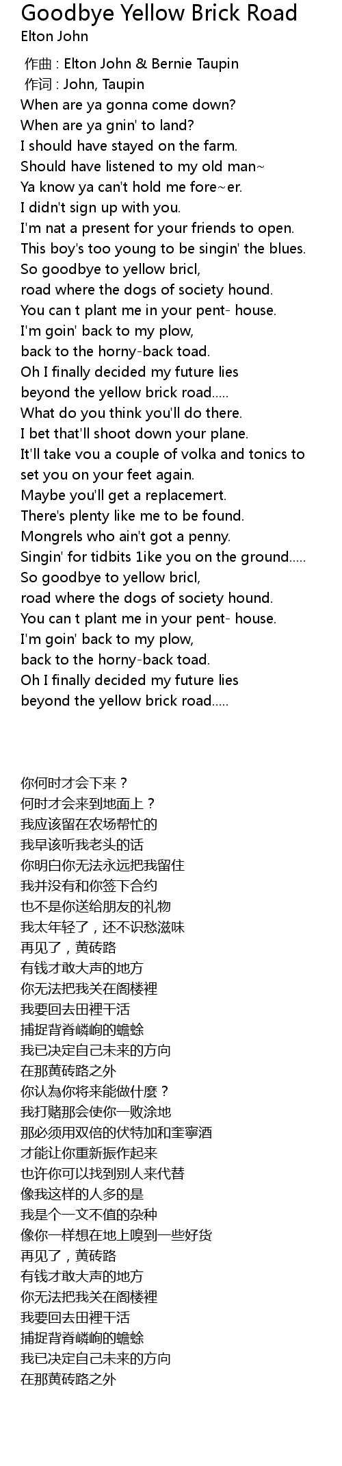 | [00:00.00] | 作曲 : Elton John & Bernie Taupin |
