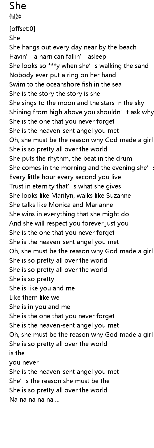 | [00:28.62] | She looks so ***y when she’s walking the sand |