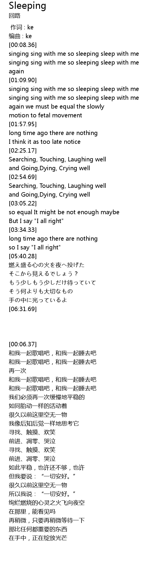 | [00:36.29] | singing sing with me so sleeping sleep with me |