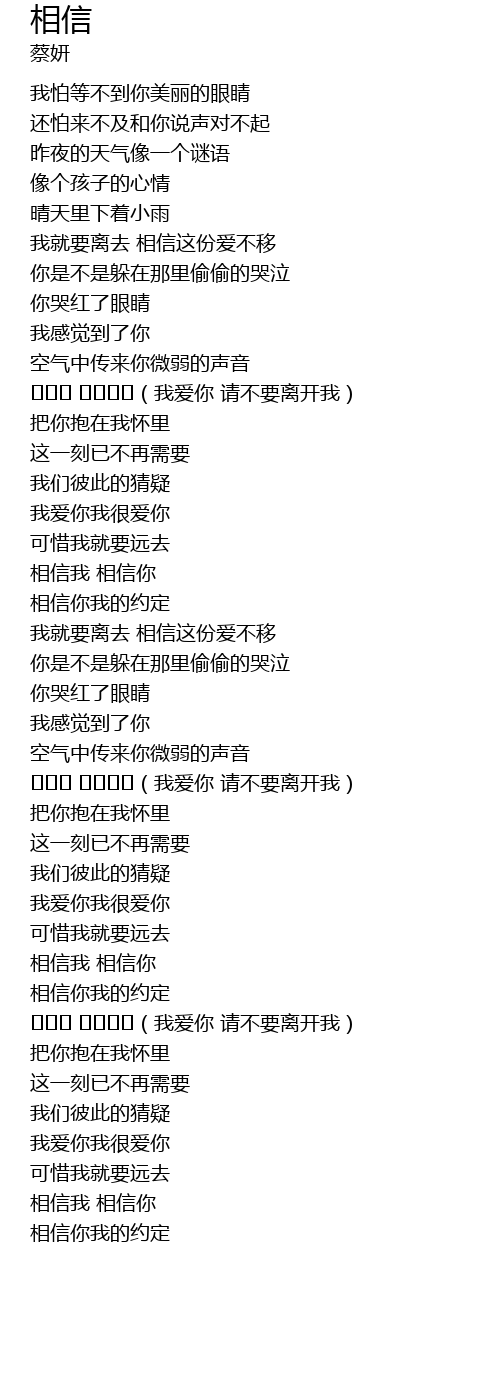 | [00:49.430] | 我就要离去 相信这份爱不移 |