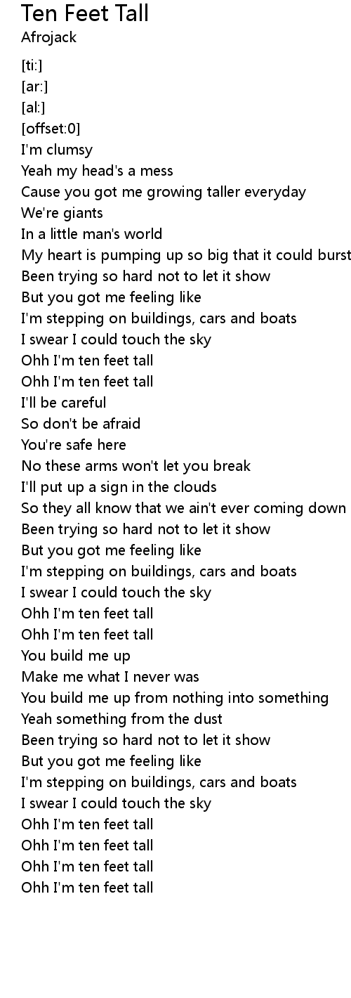 Ohh I'm ten feet tall |