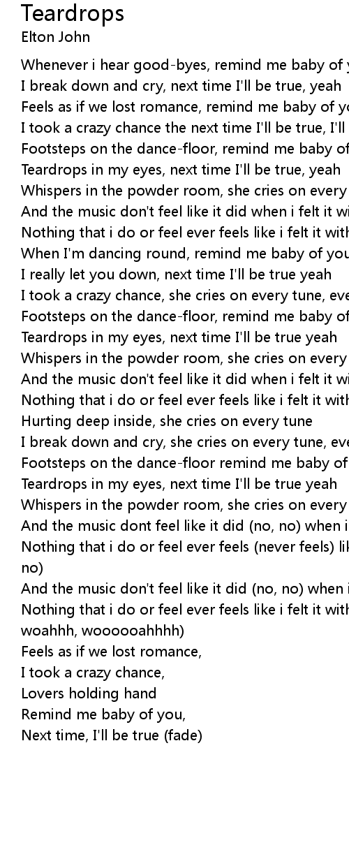 I took a crazy chance, she cries on every tune, every tune, every tune |