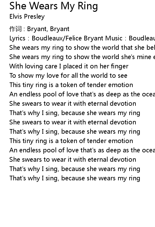 | That' s why I sing, because she wears my ring | |