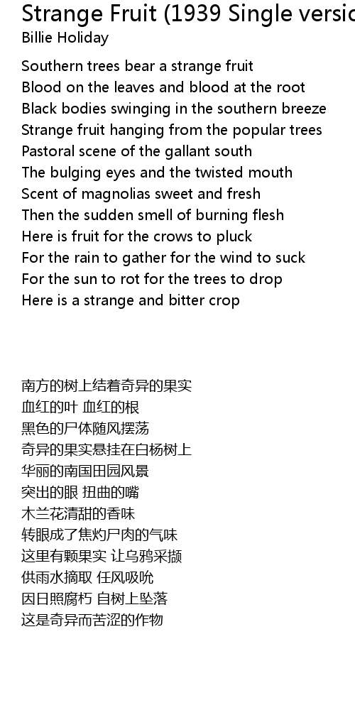 Strange Fruit (1939 Single version) Lyrics