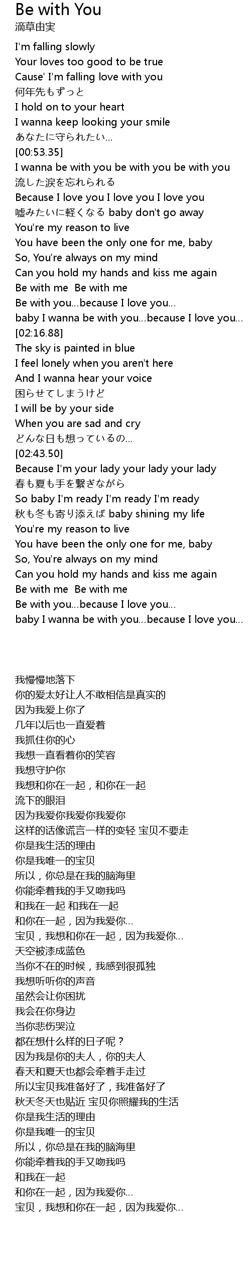 | [02:02.28] | baby I wanna be with you…because I love you… |