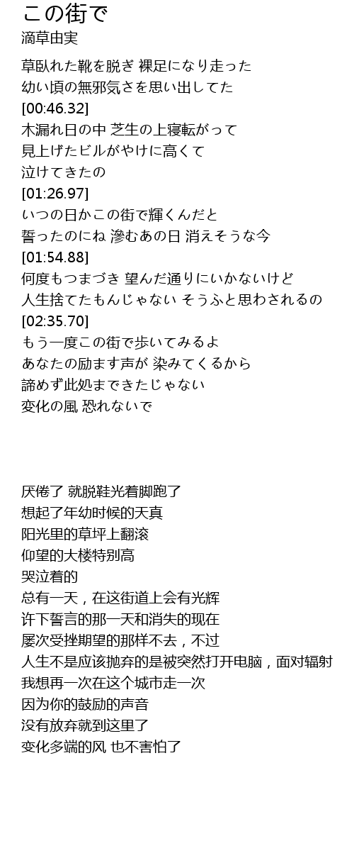 | [02:36.24] | もう一度この街で歩いてみるよ |
