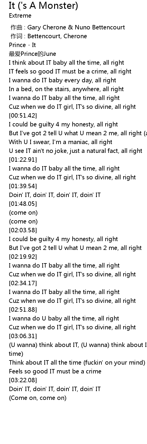 | [02:20.51] | I wanna do IT baby all the time, all right |