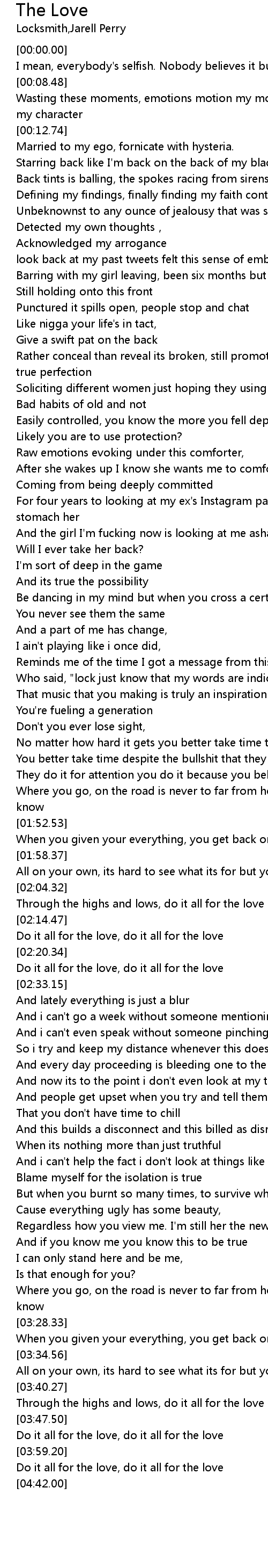 | [04:04.33] | Do it all for the love, do it all for the love |