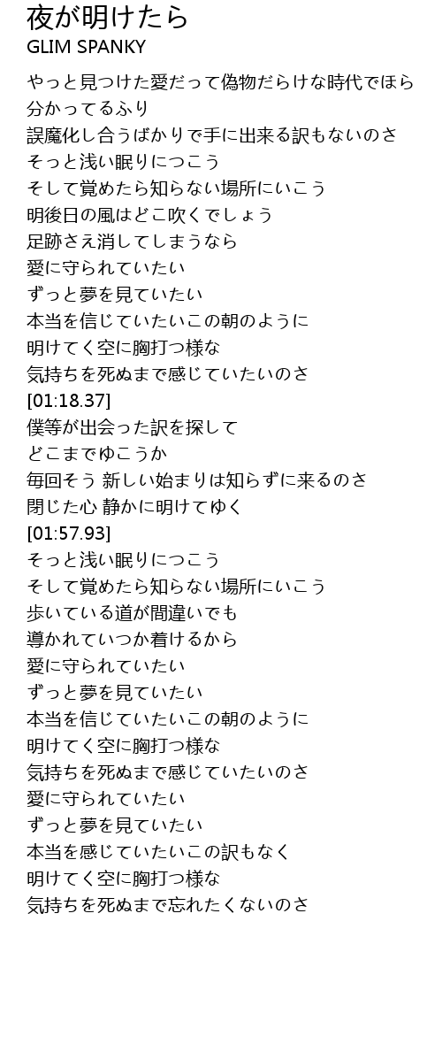 | [01:07.33] | 明けてく空に胸打つ様な |
