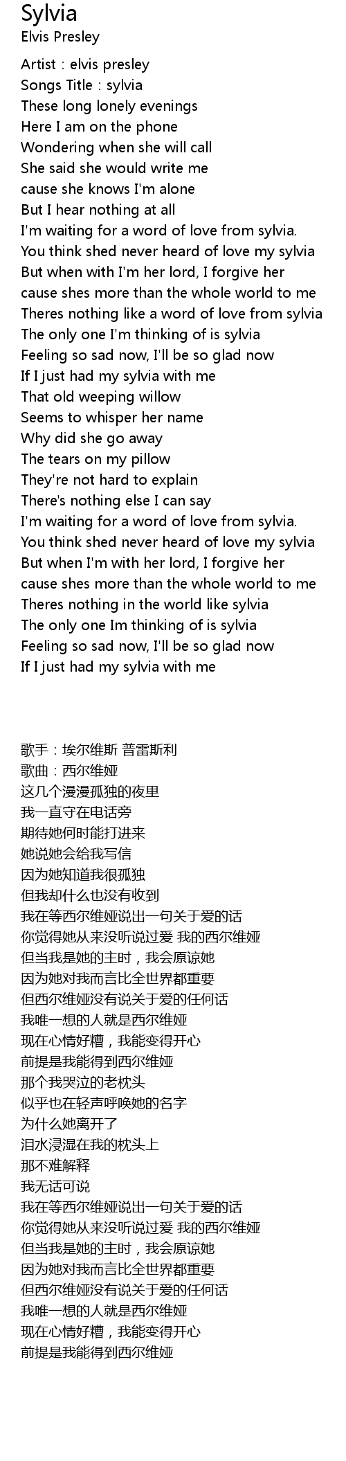 | [00:02.25] | Songs Title:sylvia |