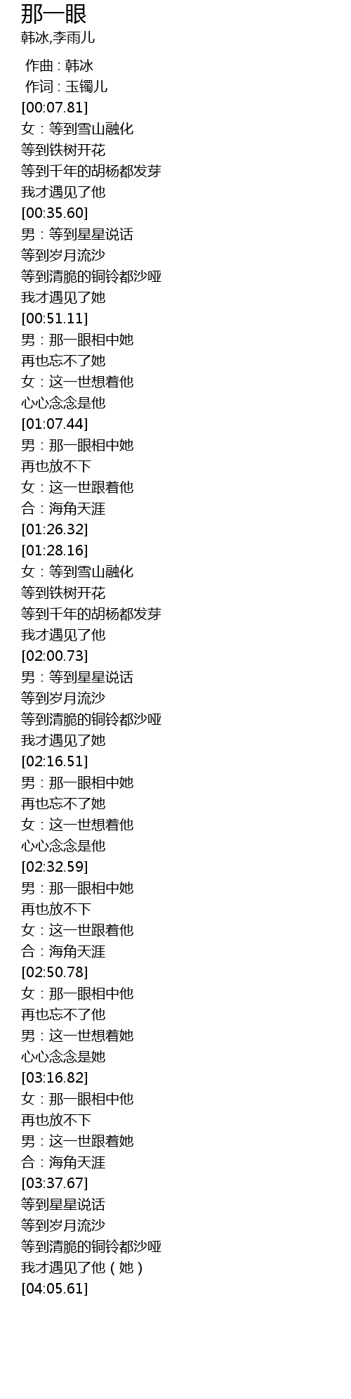 | [03:17.04] | nǚ: nà yī yǎn xiāng zhòng tā |