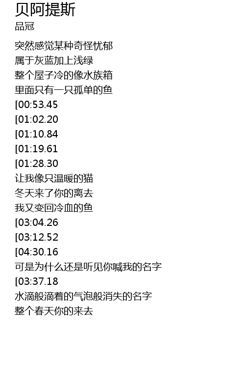 | [03:54.58][03:37.18] | 贝阿提丝 贝阿提丝 |
