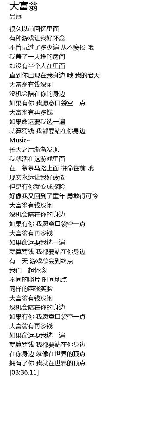 | [03:03.69] | 大富翁有再多钱 |