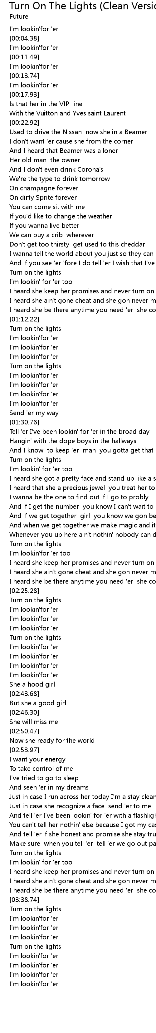 | [03:10.41] | And tell 'er I've been lookin' for 'er with a flashlight |