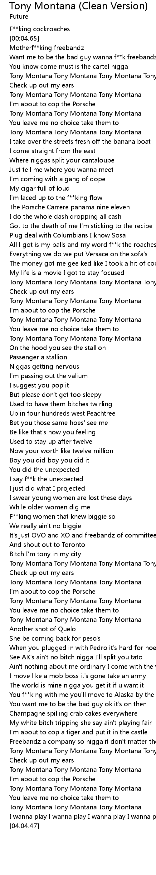 | [03:58.16] | Tony Montana Tony Montana Tony Montana |