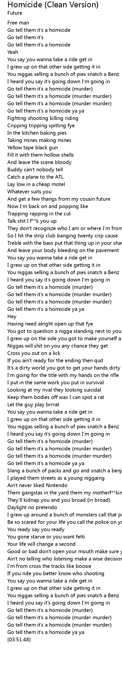 | [03:47.35] | Go tell them it's a homicide ya ya |