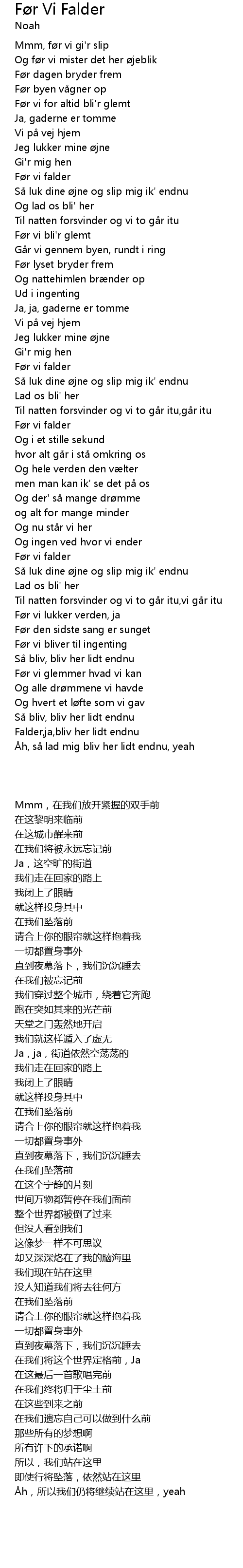 | Song | Før Vi Falder |