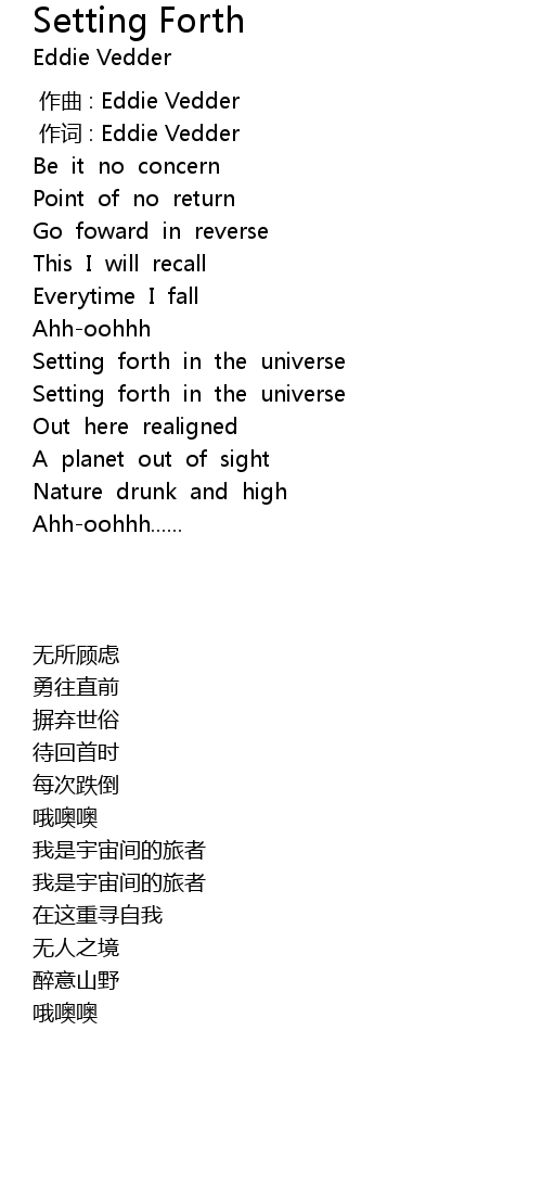 | [00:40.05] | Setting forth in the universe |