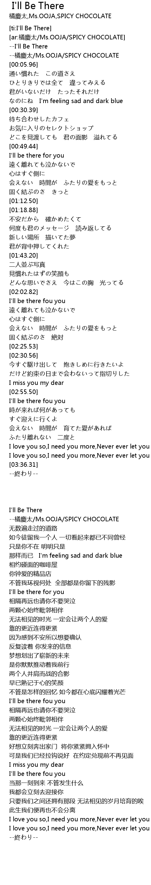 | [00:03.12] | --橘慶太/Ms.OOJA/SPICY CHOCOLATE |