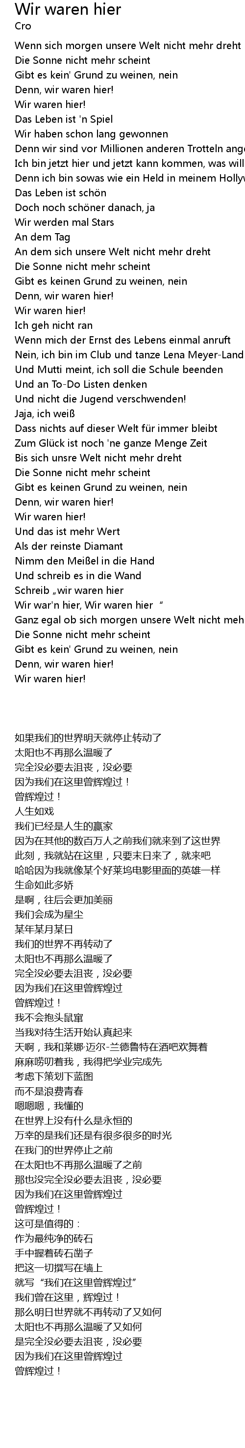 | [01:49.35] | Wir war'n hier, Wir waren hier“ |
