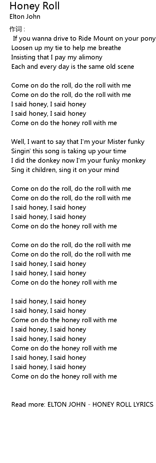 | Read more: ELTON JOHN HONEY ROLL LYRICS |