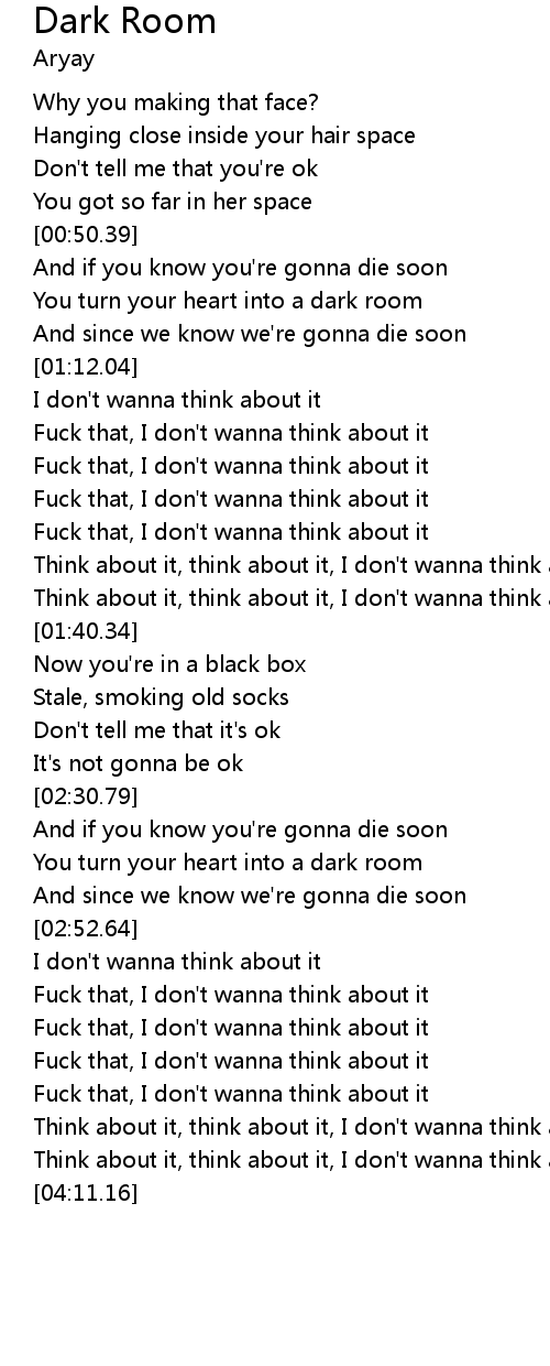 | [02:58.91] | Fuck that, I don't wanna think about it |