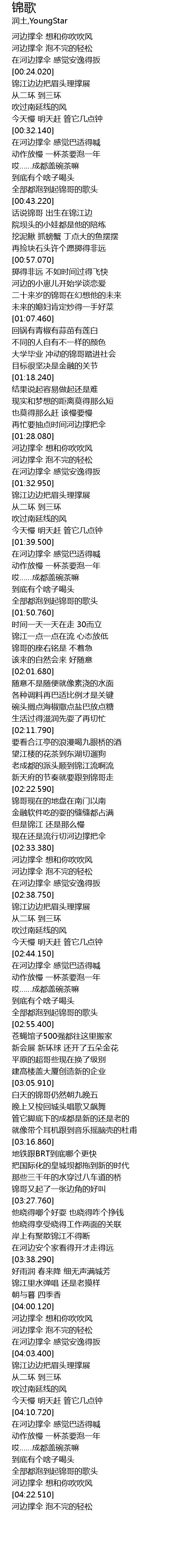 | [02:38.970] | 锦江边边把眉头理撑展 |