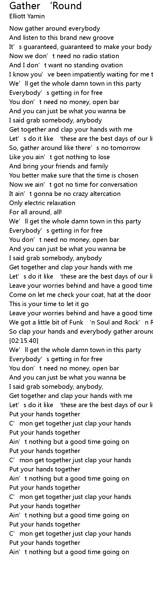 | [01:07.78] | So, gather around like there’s no tomorrow |