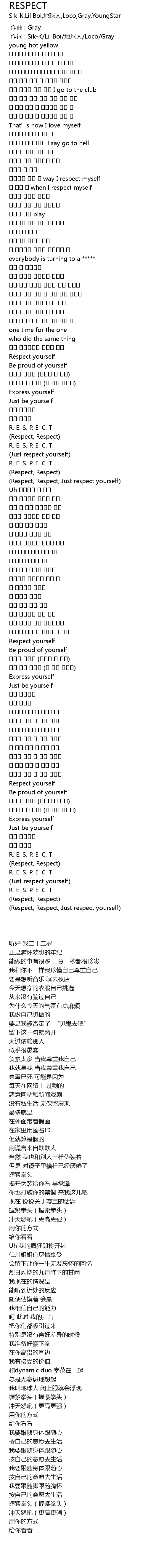 | [00:01.00] | 作词 : Sik-K/Lil Boi/地球人/Loco/Gray |