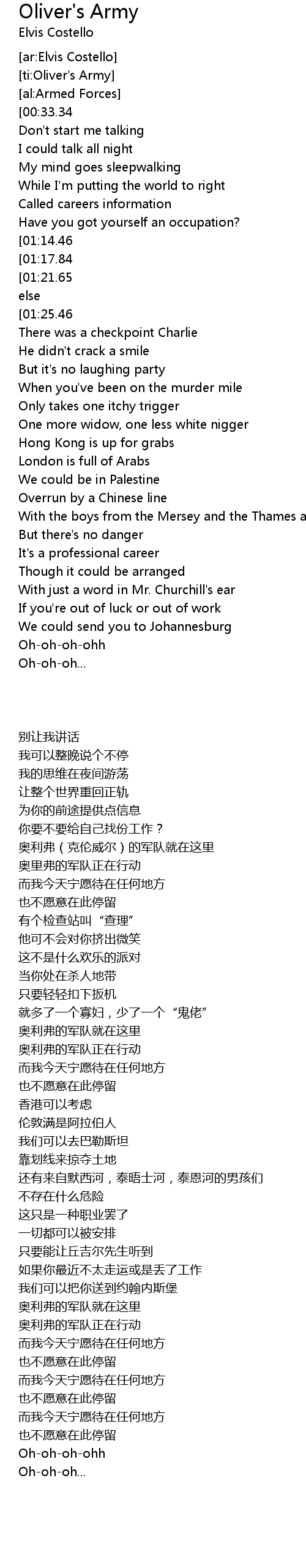 [ti:Oliver's Army] |