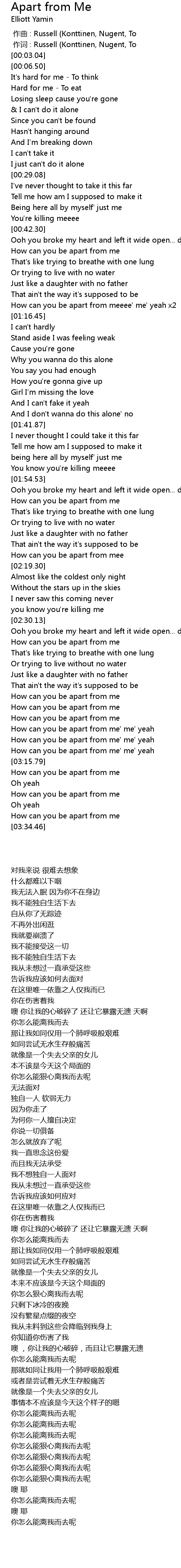 | [03:28.42] | How can you be apart from me |