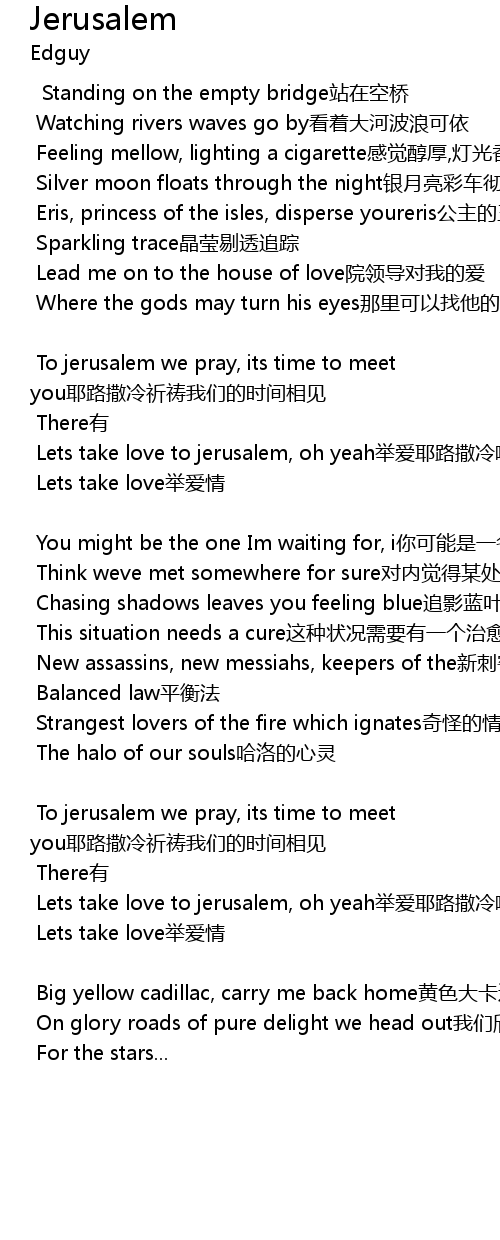 | To jerusalem we pray, its time to meet you耶路撒冷祈祷我们的时间相见 | |