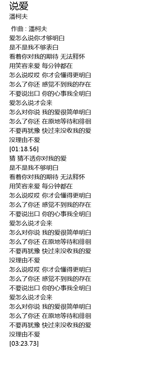 | [00:59.59] | 怎么对你说 我的爱很简单明白 |