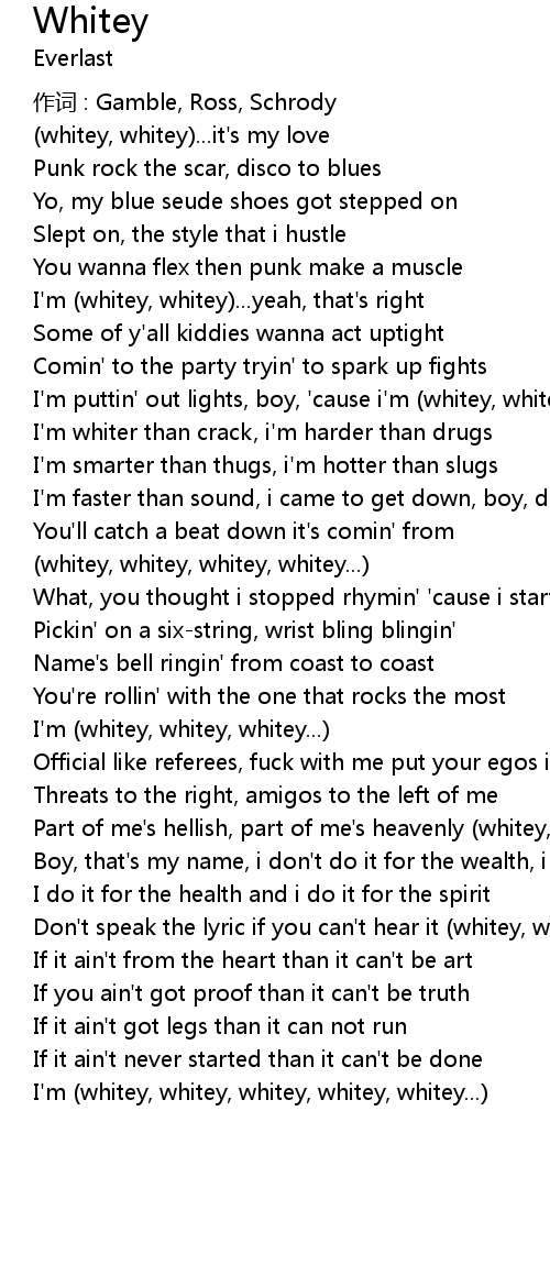 | Don' t speak the lyric if you can' t hear it whitey, whitey, whitey... | |