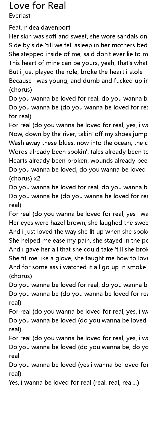 For real (do you wanna be loved for real, yes, i wanna be loved for real) |