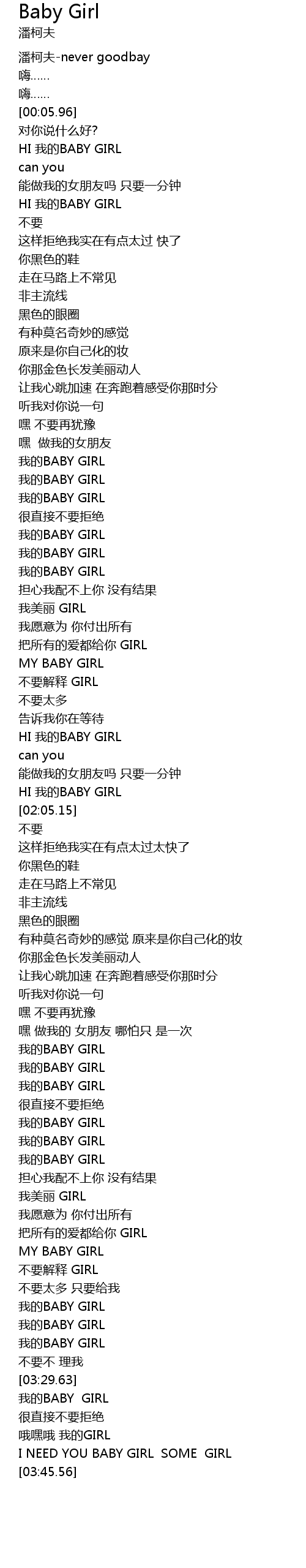 | [02:03.71] | HI wǒ de BABY GIRL |