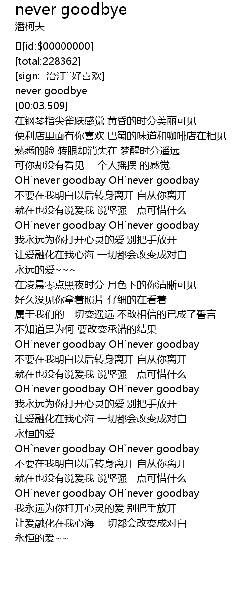 | [02:32.372] | OH never goodbay OH never goodbay |